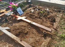 На данном участке изначально находилась старая могила и новое захоронение. На могиле стоят широкий гранитный памятник, левее располагались простые деревянные кресты.